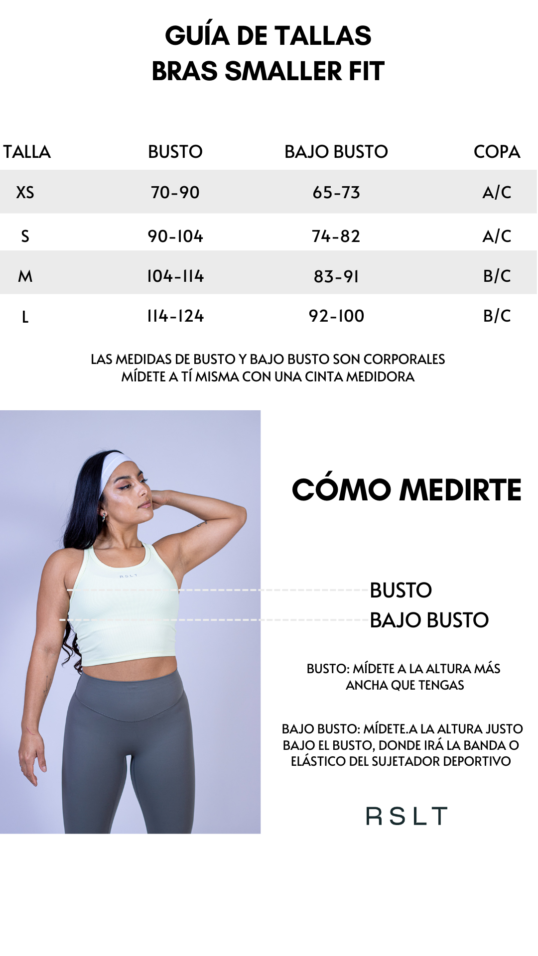 Importante: la pretina de este top es bastante compacta, y cede menos que otros diseños, la talla es similar a Lift Bra, revisa la guía de tallas.
